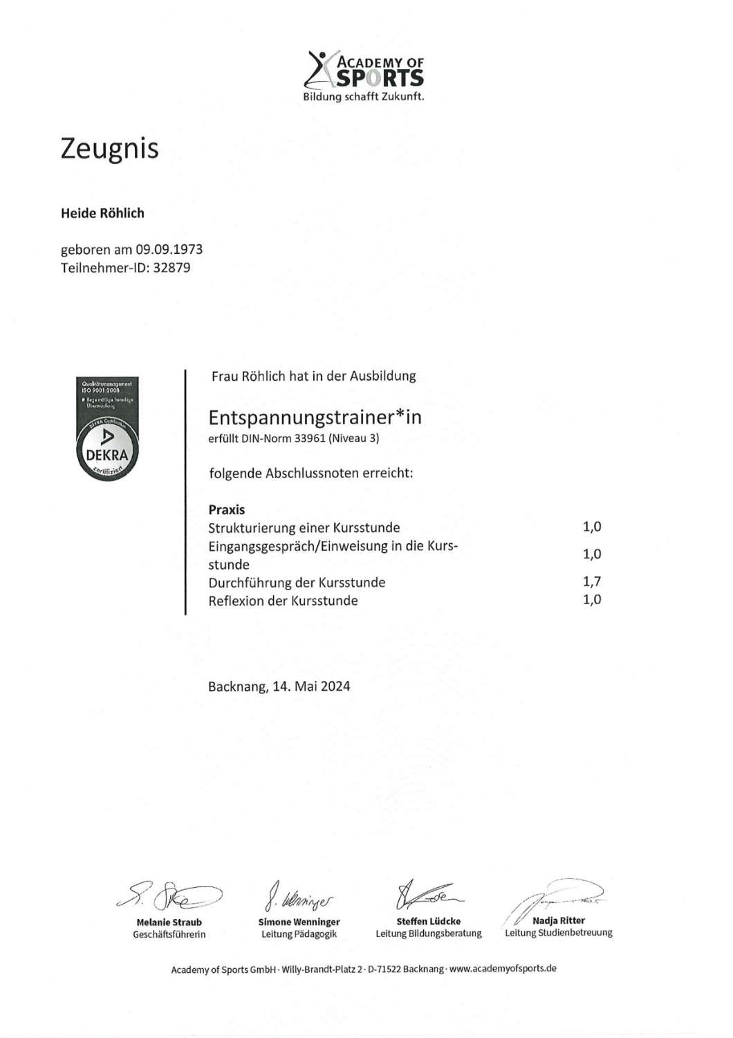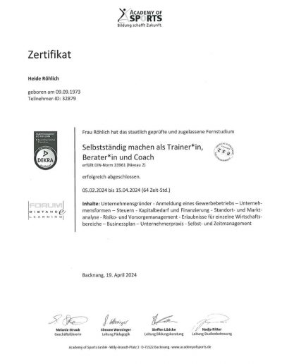 - Ausgebildeter Mentaltrainer (Sportakademie Köln)