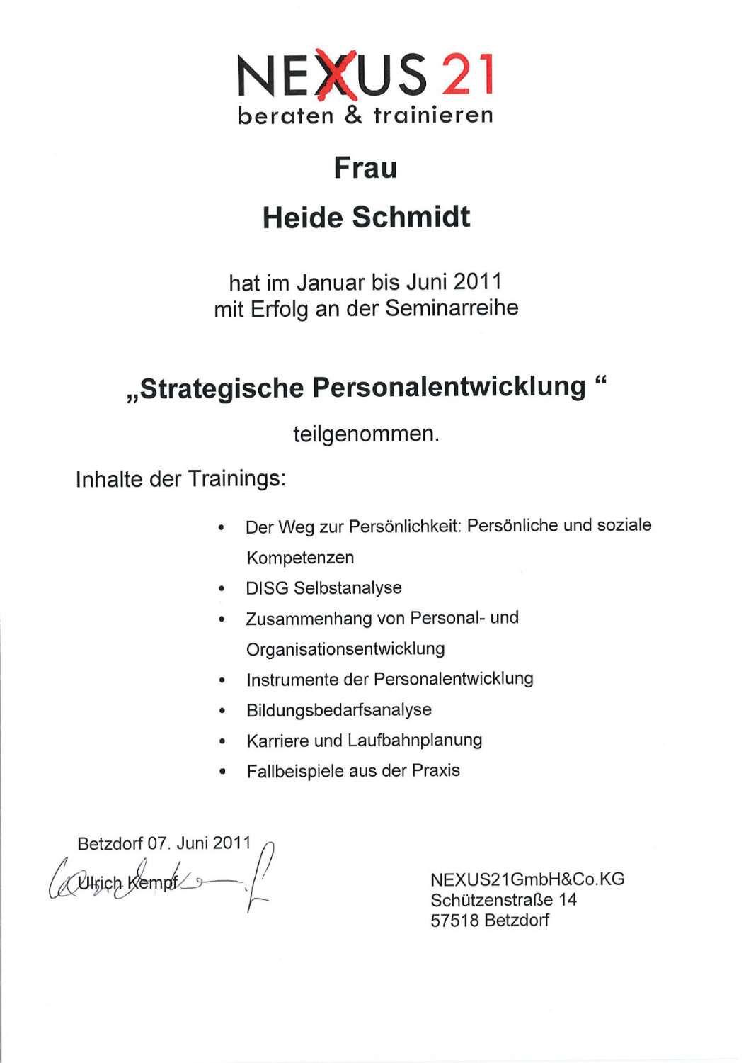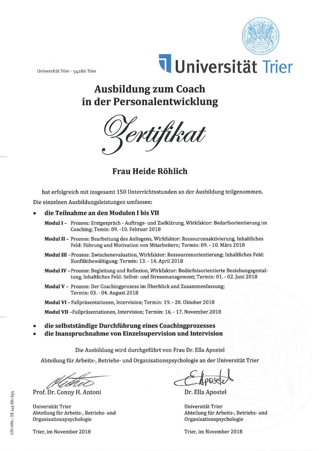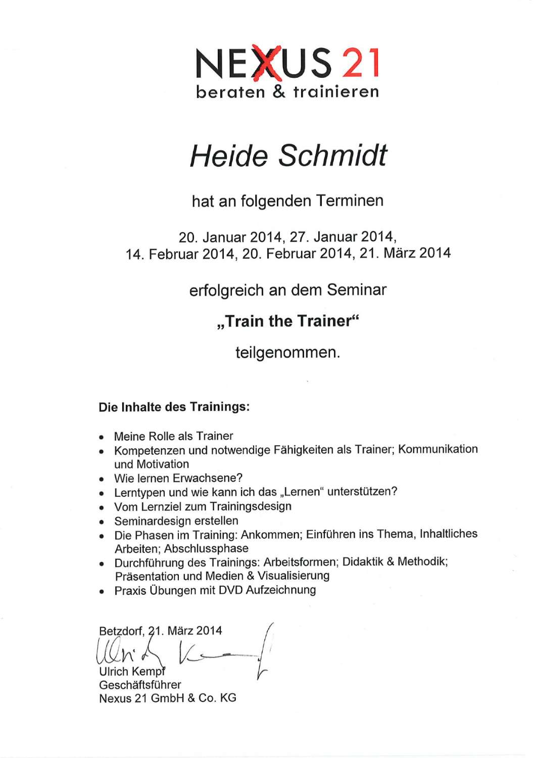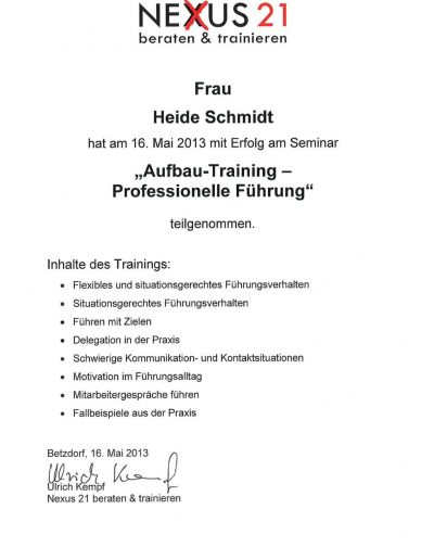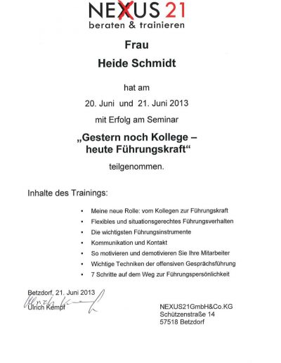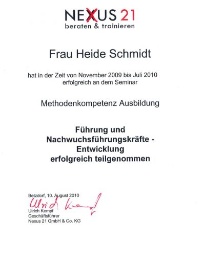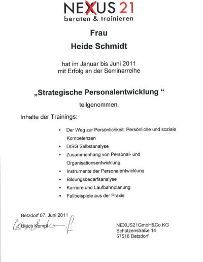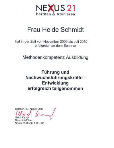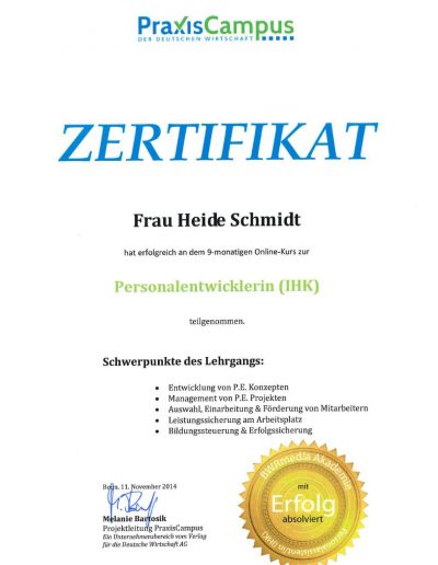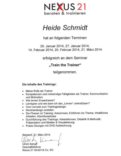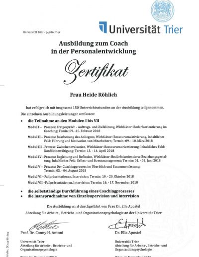 - Ausgebildeter Coach in der Personalentwicklung (Uni Trier)