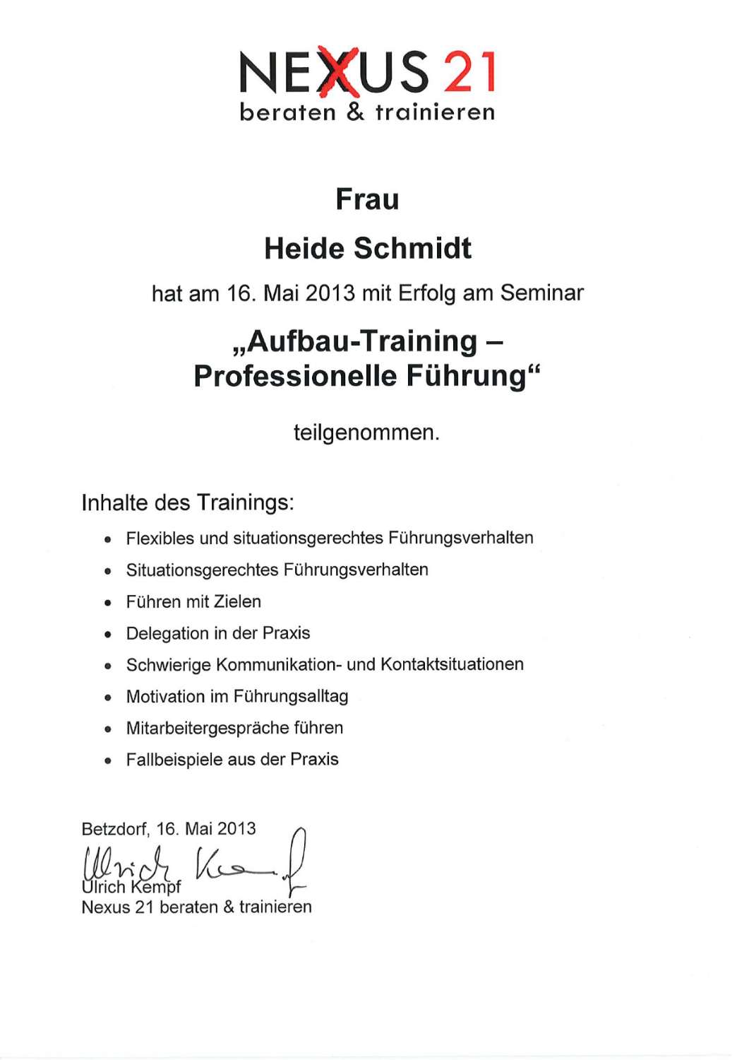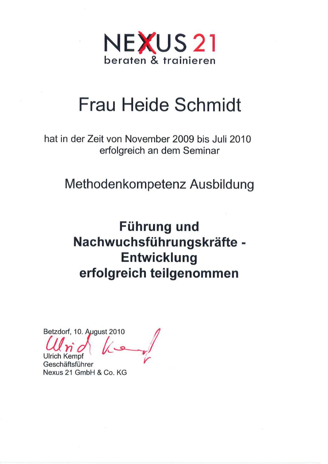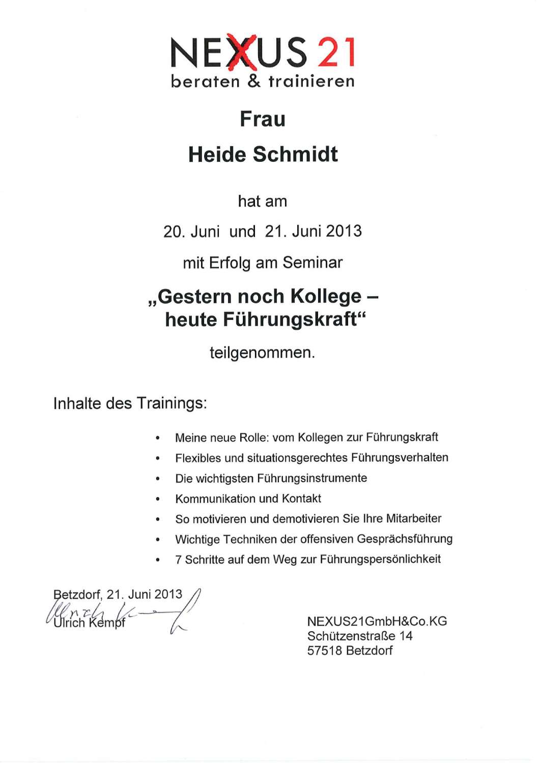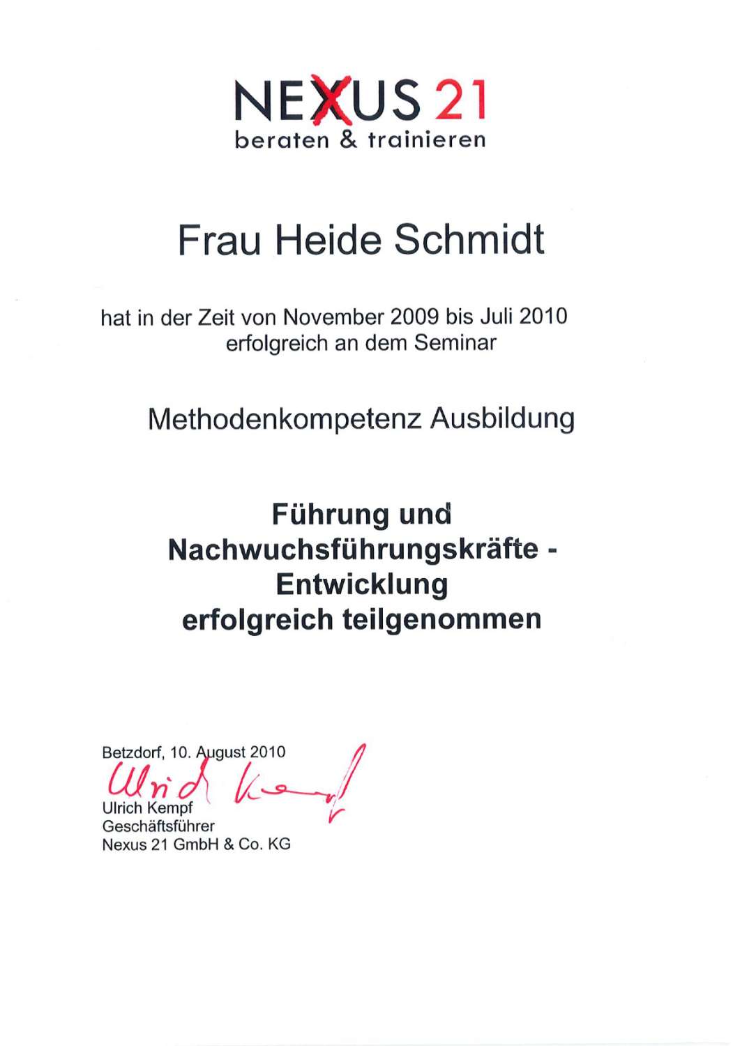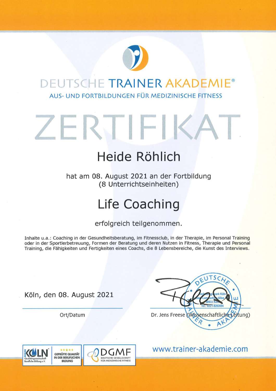 - Ausgebildeter Coach in der Personalentwicklung (Uni Trier)
